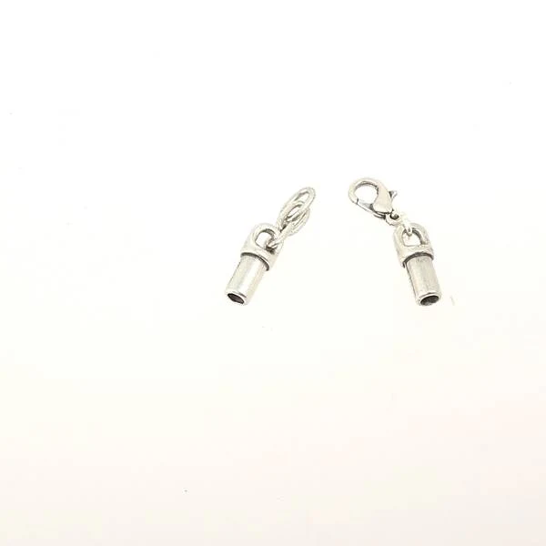 Fermoir bijou avec une fermeture mini mousqueton pour un lacet rond en cuir de 3 mm de diamètre. Appliquez un point de colle cyanoacrylate (super glue) dans le fermoir pour maintenir le lacet.Matière : métal plaqué argent véritable garanti sans nickel